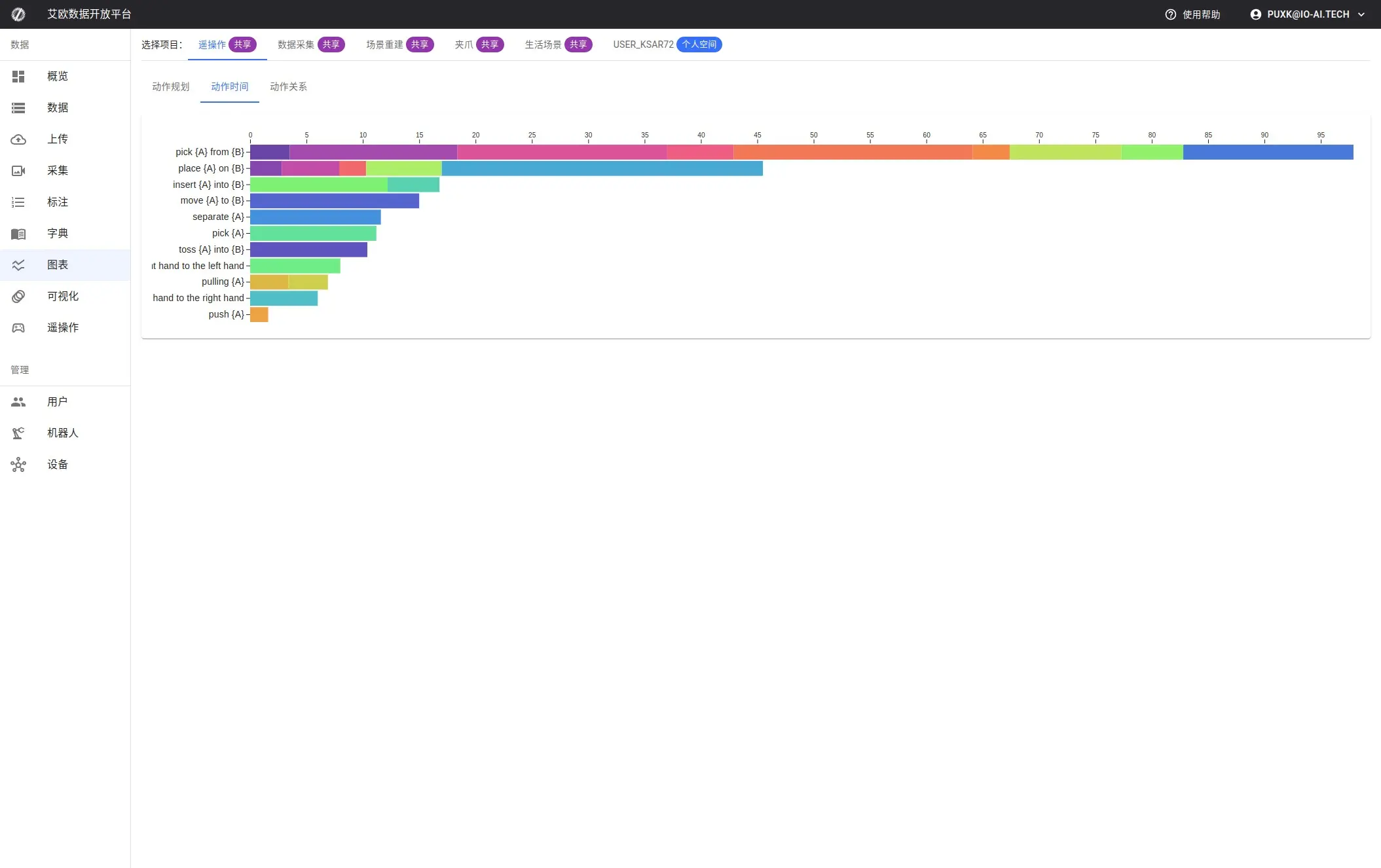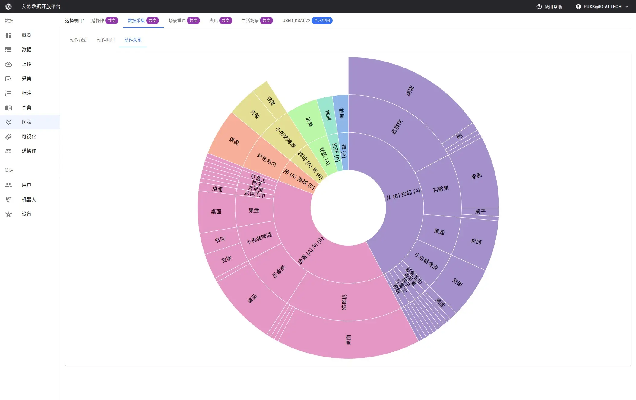 Charts are used to analyze project data, summarizing and outputting the annotated content, trajectories, and patterns visually, making it easy to understand the characteristics of the annotation tasks.