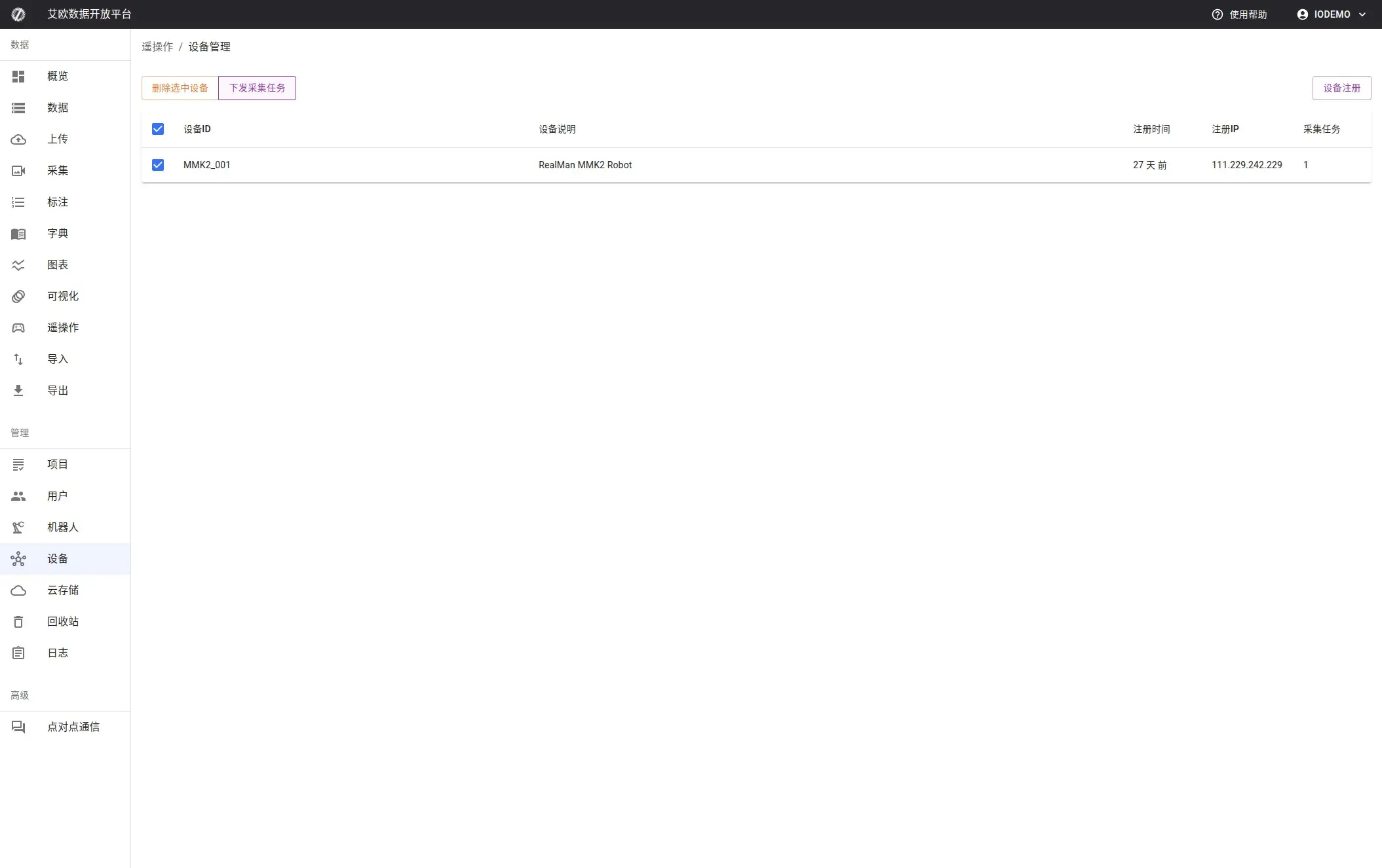 The device module is designed for teleoperation products. Devices can automatically register on the platform via API, pull related collection tasks, and upload data to the platform after completing tasks.