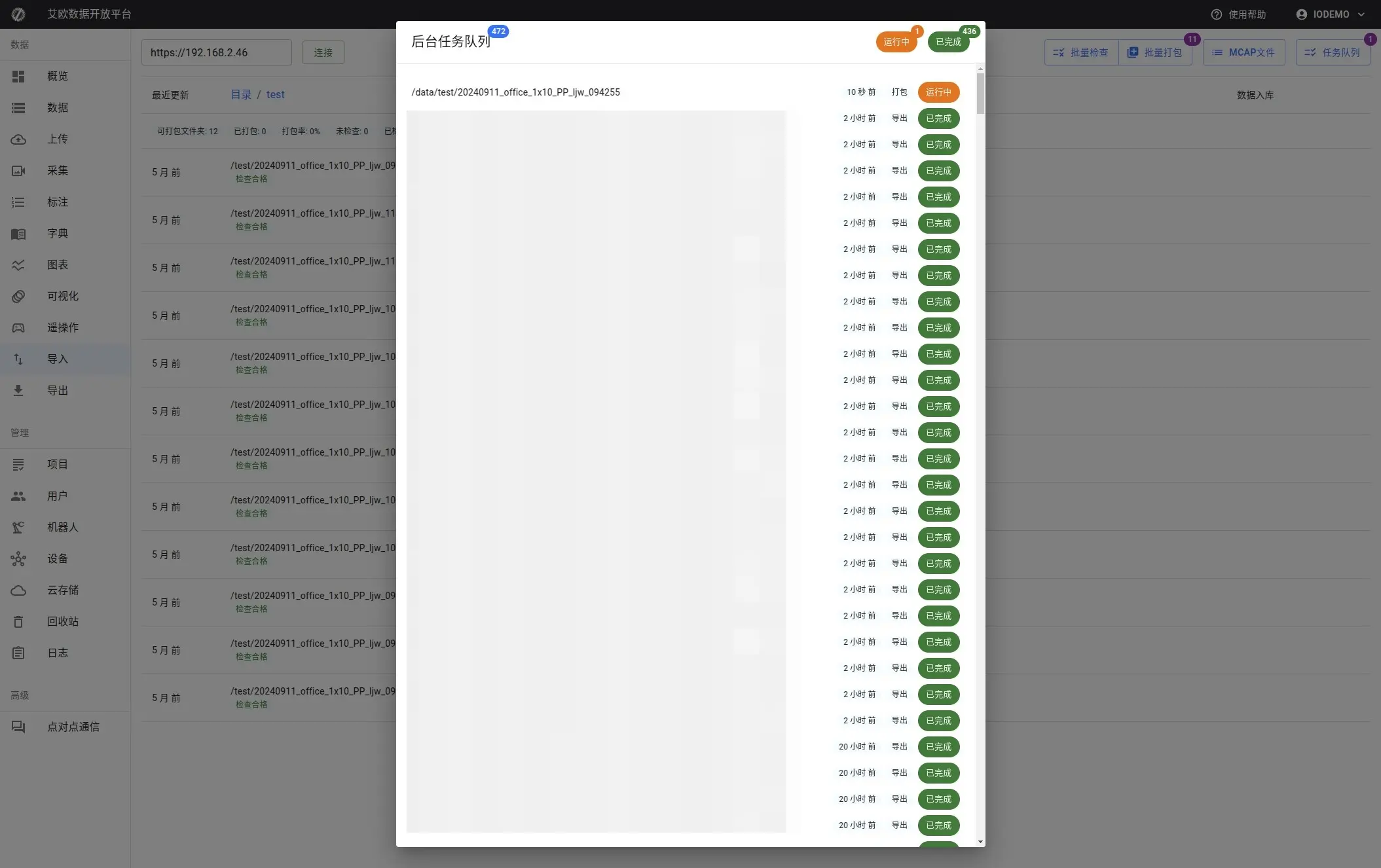 Ensure IO-Agent software is installed on your local server. This software manages, preprocesses, and quality checks the data, producing MCap files ready for cloud upload.