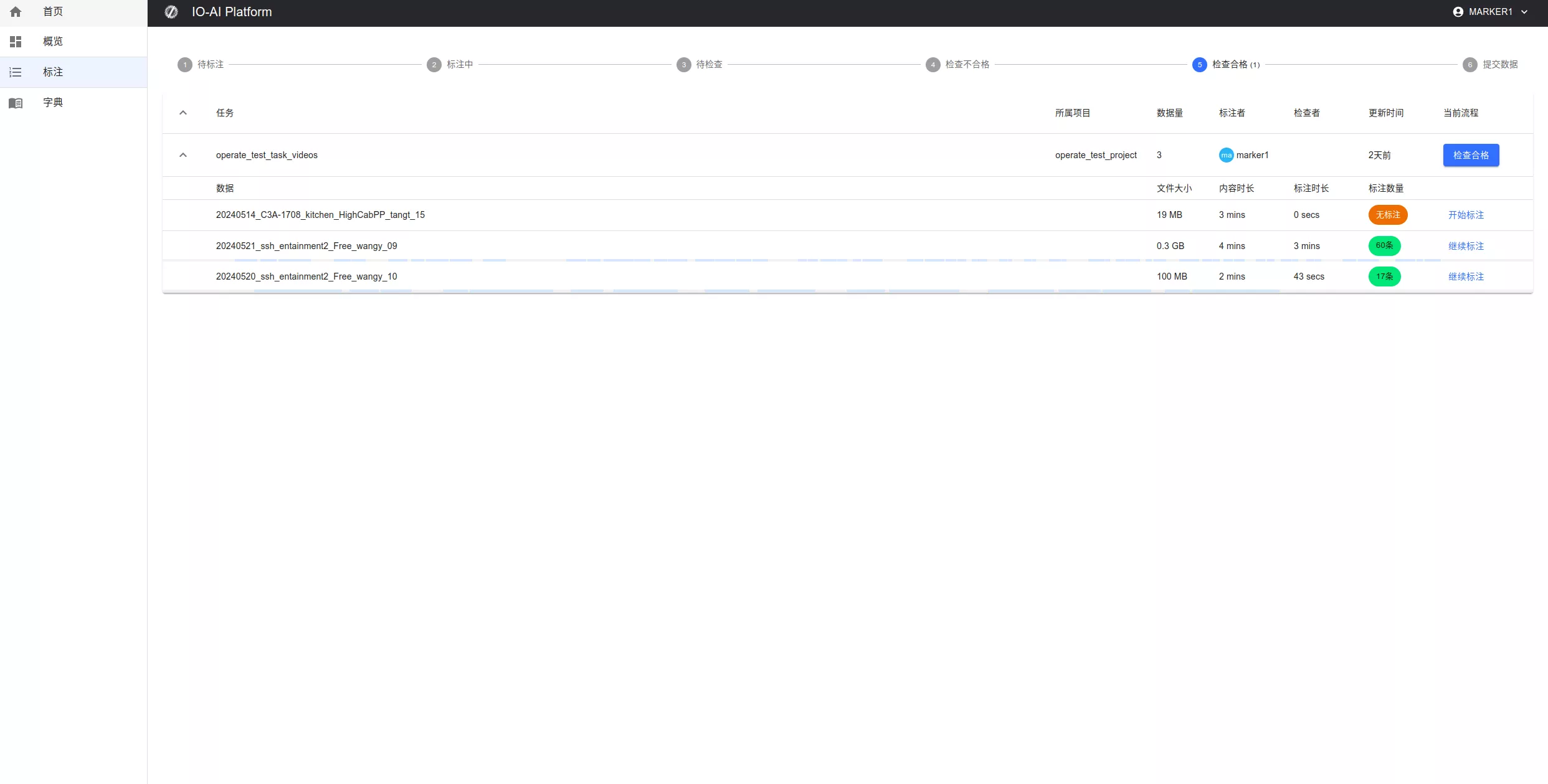 After logging in, click on the annotation list on the left to view your assigned tasks. Check the status of the data.
