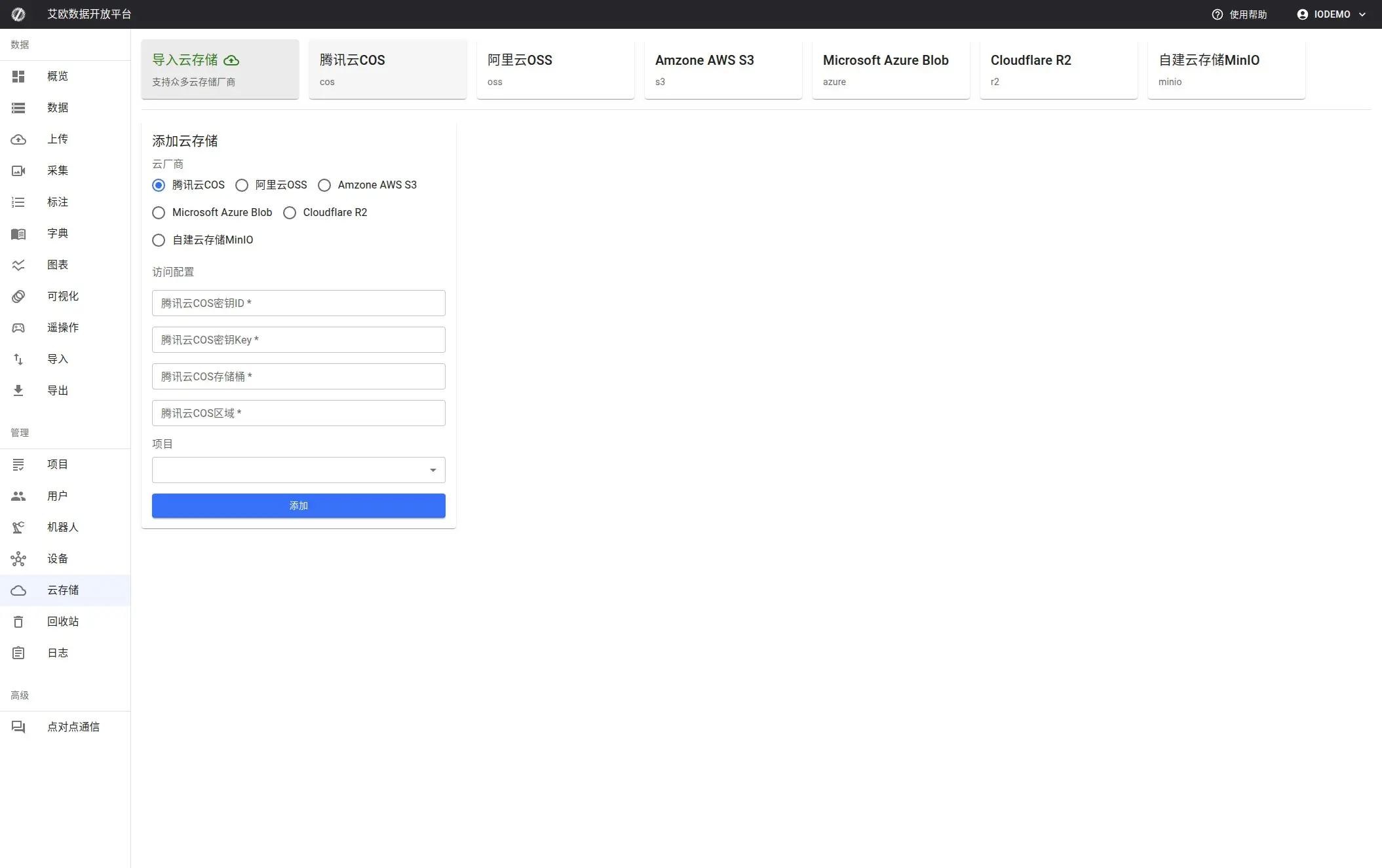 上传模块支持上传单个或多个Mcap/Bag/Mp4等文件,您可以选择上传到各种云存储上,然后项目里的其他用户可以在线进行多模态数据标注。