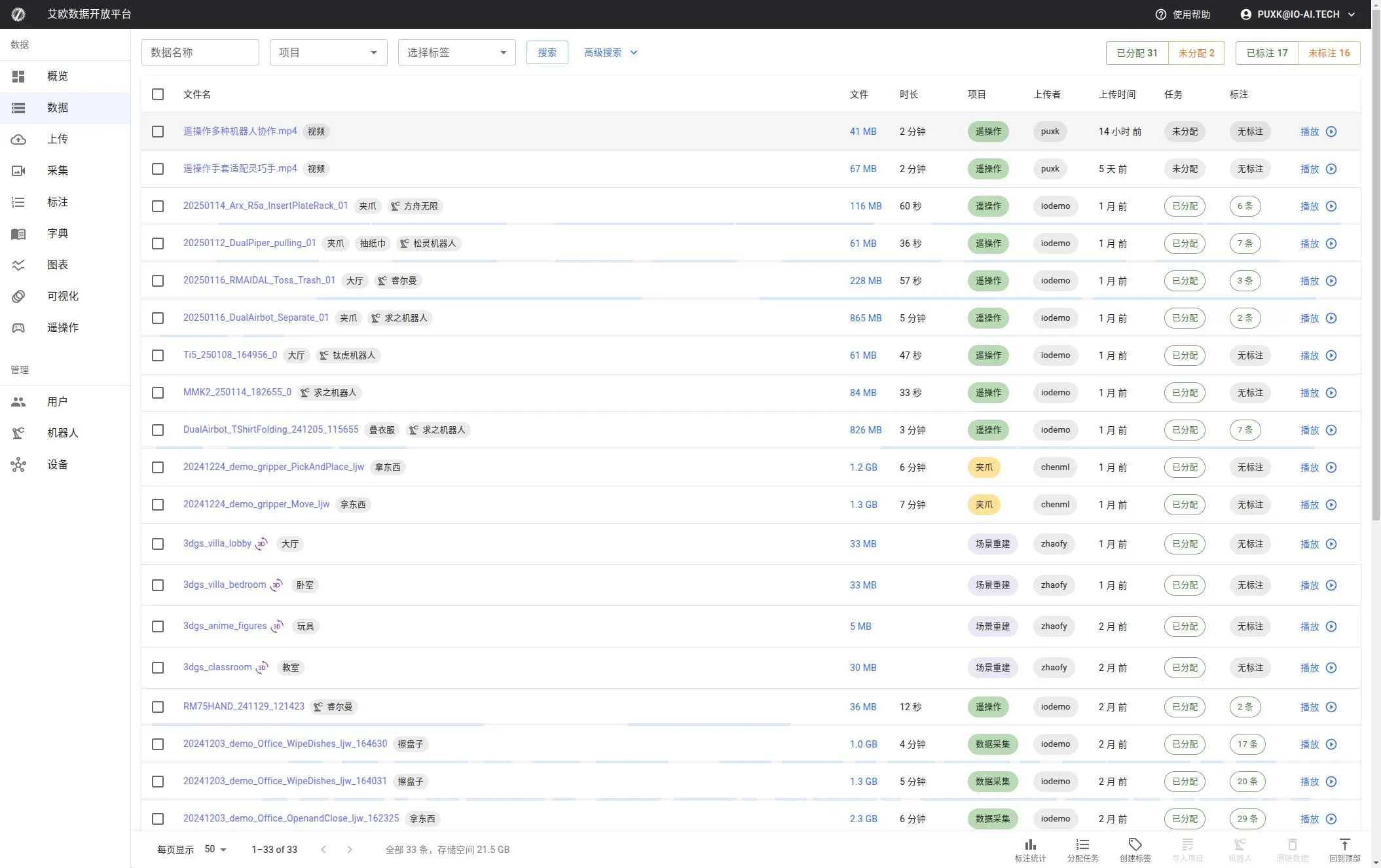 数据模块允许您查看和管理所有数据。您可以进行项目 分配、创建任务队列和任务分发,确保数据处理流程的高效运作。