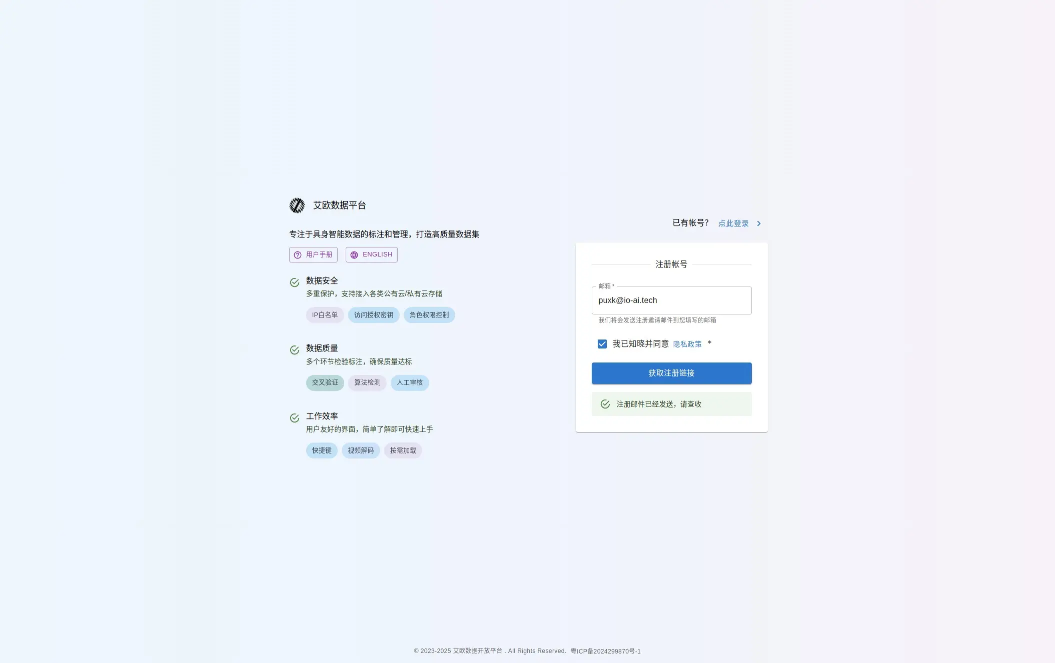 点击按钮即可完成注册,接下来使用邮箱和密码登录即可。