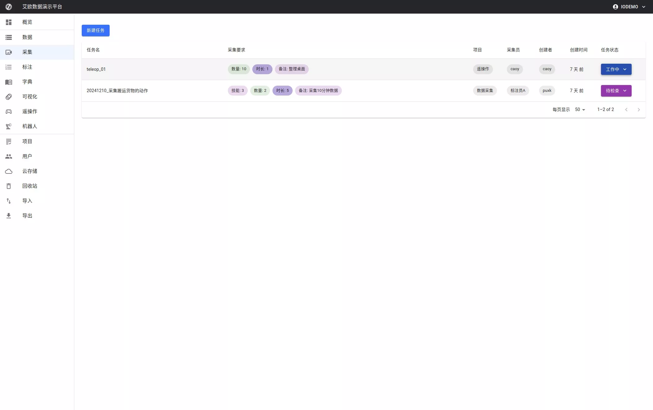 通过“新建任务”窗口,可以创建一个新的数据采集任务。用户可以设置任务名称、选择数据集、配置采集要求等。
